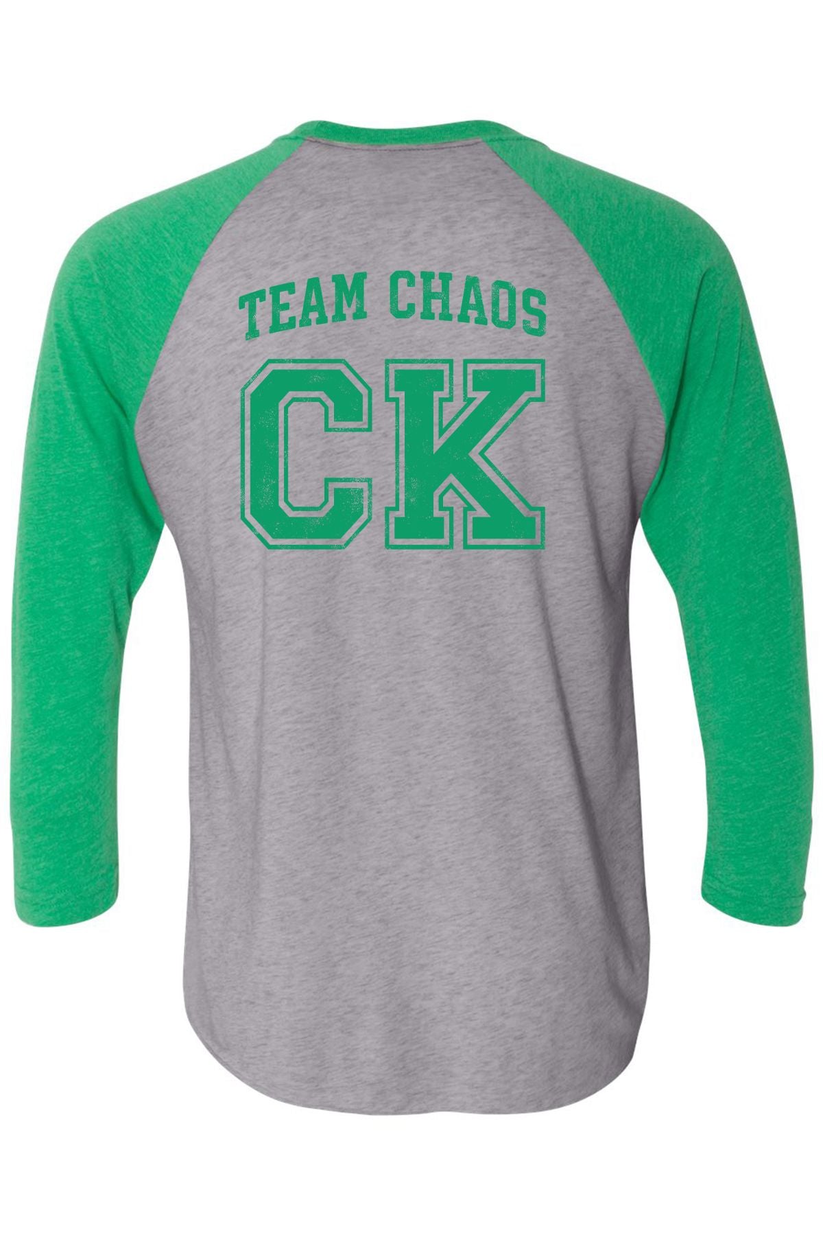 The Team Chaos baseball tee brings that bold, playful energy with a clean, athletic look. With its soft feel, contrast sleeves, and “Team Chaos CK” back graphic, it’s built for real life — the messy, fun, unpredictable kind.
