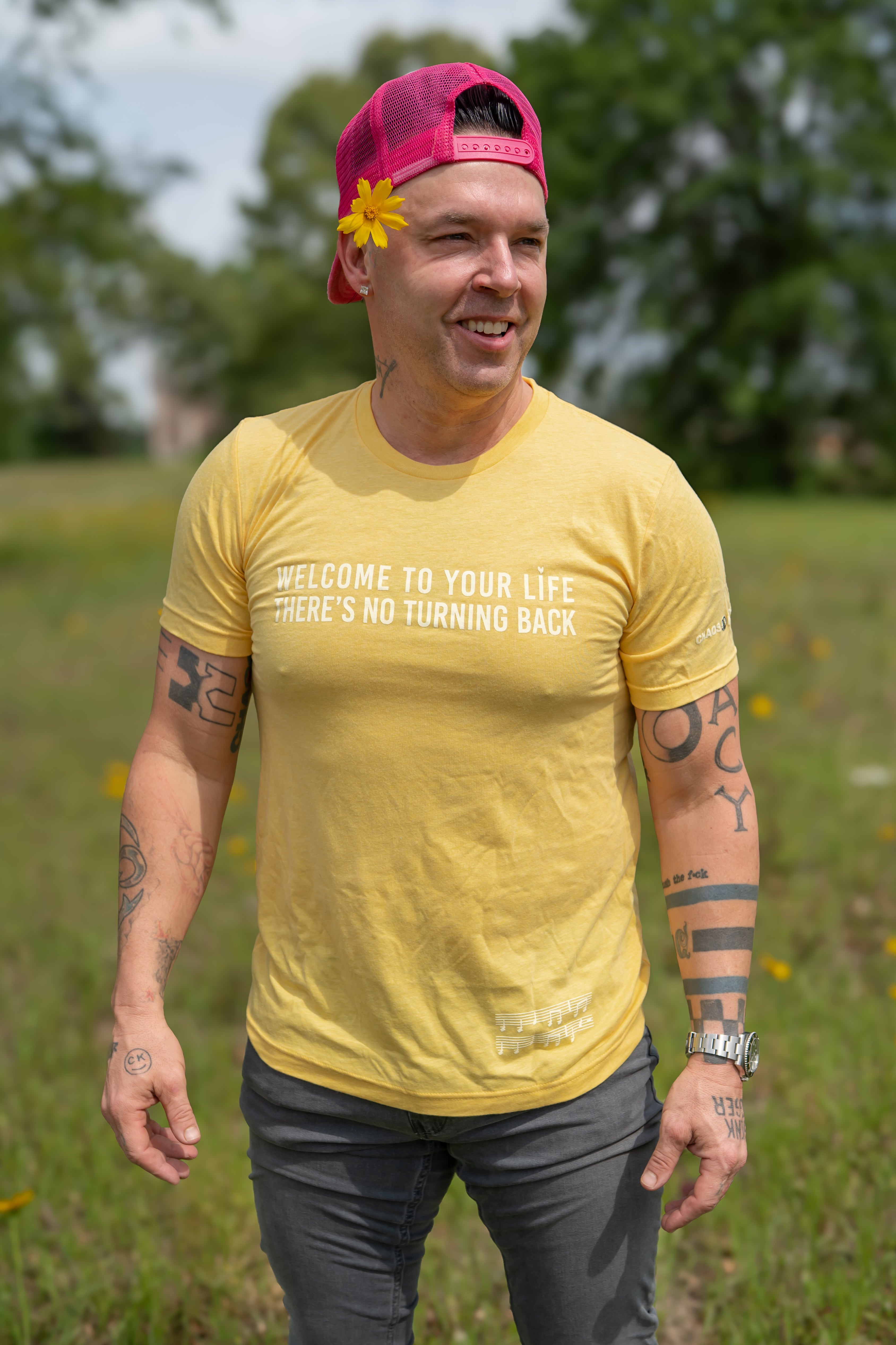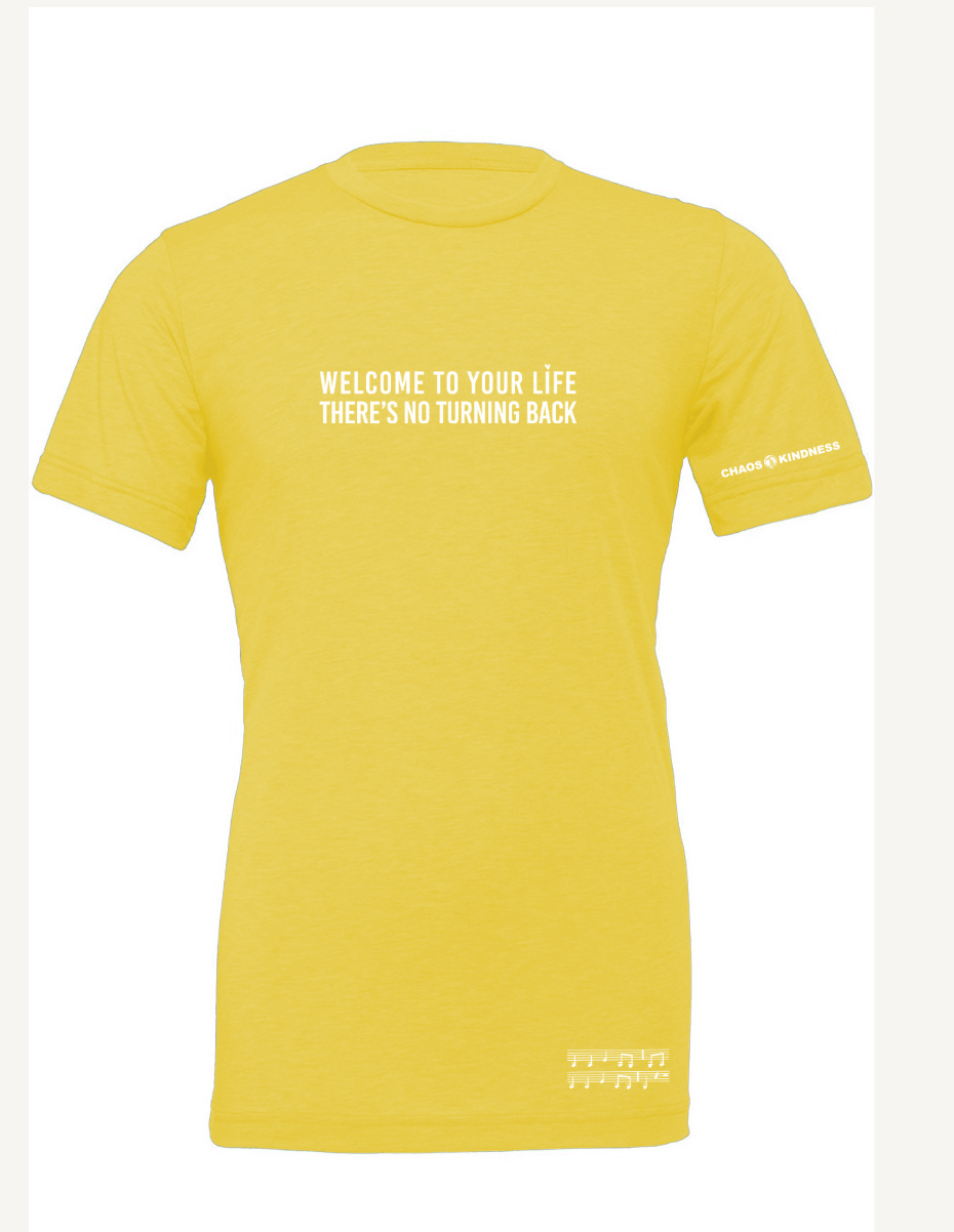 "Welcome to your life, there’s NO turning back" means we have right NOW—and right now only. Live your life because this is it. It's emotional. It's real. And now, it's on a hoodie and tee for you to carry with you for life.