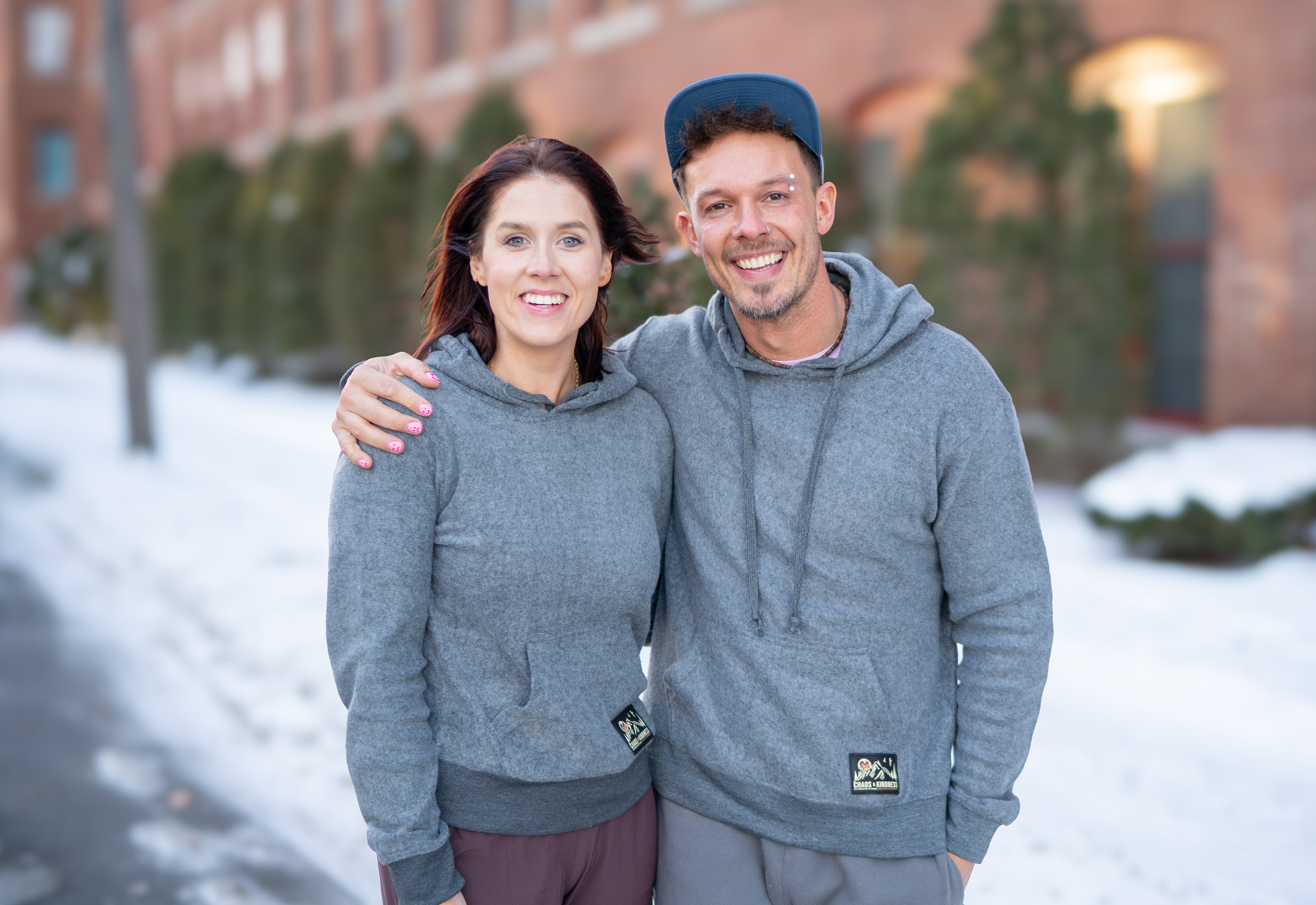 Ryan is wearing a size Large, Kailah is wearing an XS.